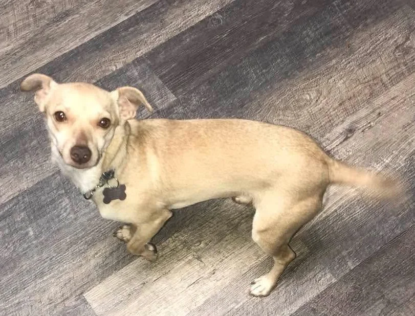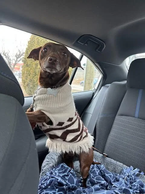 I’m a 4-year-old, 16lb chocolate chihuahua mix with the sweetest heart and the biggest second-chance story.