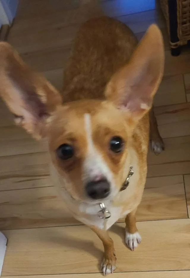 Meet Clove ✨ Clove is a sweet, one-year-old Chihuahua mix with the biggest, softest ears—and yes, they are made for gentle pets. Clove weighs just over 10 pounds.